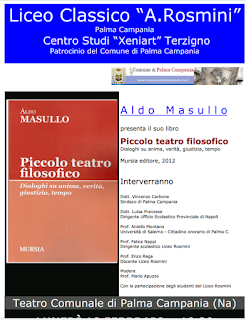 [Ripubblico qui, in ricordo di Aldo Masullo, una breve cronaca del suo incontro con gli studenti del Liceo "Rosmini" di Palma Campania avvenuto nel 2013. Anche lo scorso anno scolastico 2019-2020 il Professore ha incontrato altre classi dello stesso Istituto]